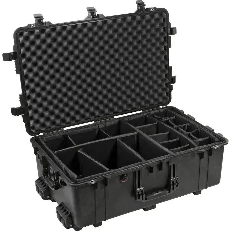 The black Pelican 1654 Waterproof 1650 Case with Black Dividers is an unbreakable, watertight, airtight, dustproof, chemical resistant and corrosion proof hard case used to carry any kind of equipment that needs to be protected from the elements.