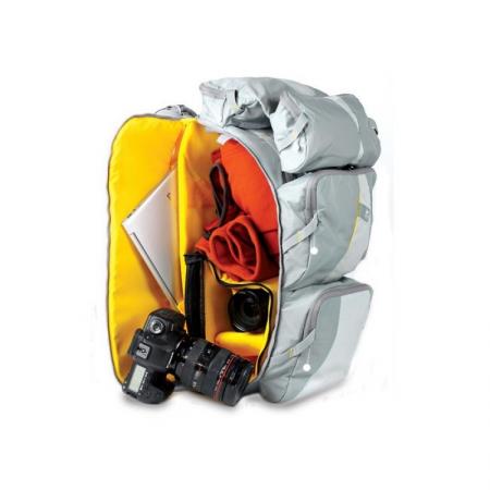 - Professional photographic backpack designed for convenient and safe transport of photographic equipment