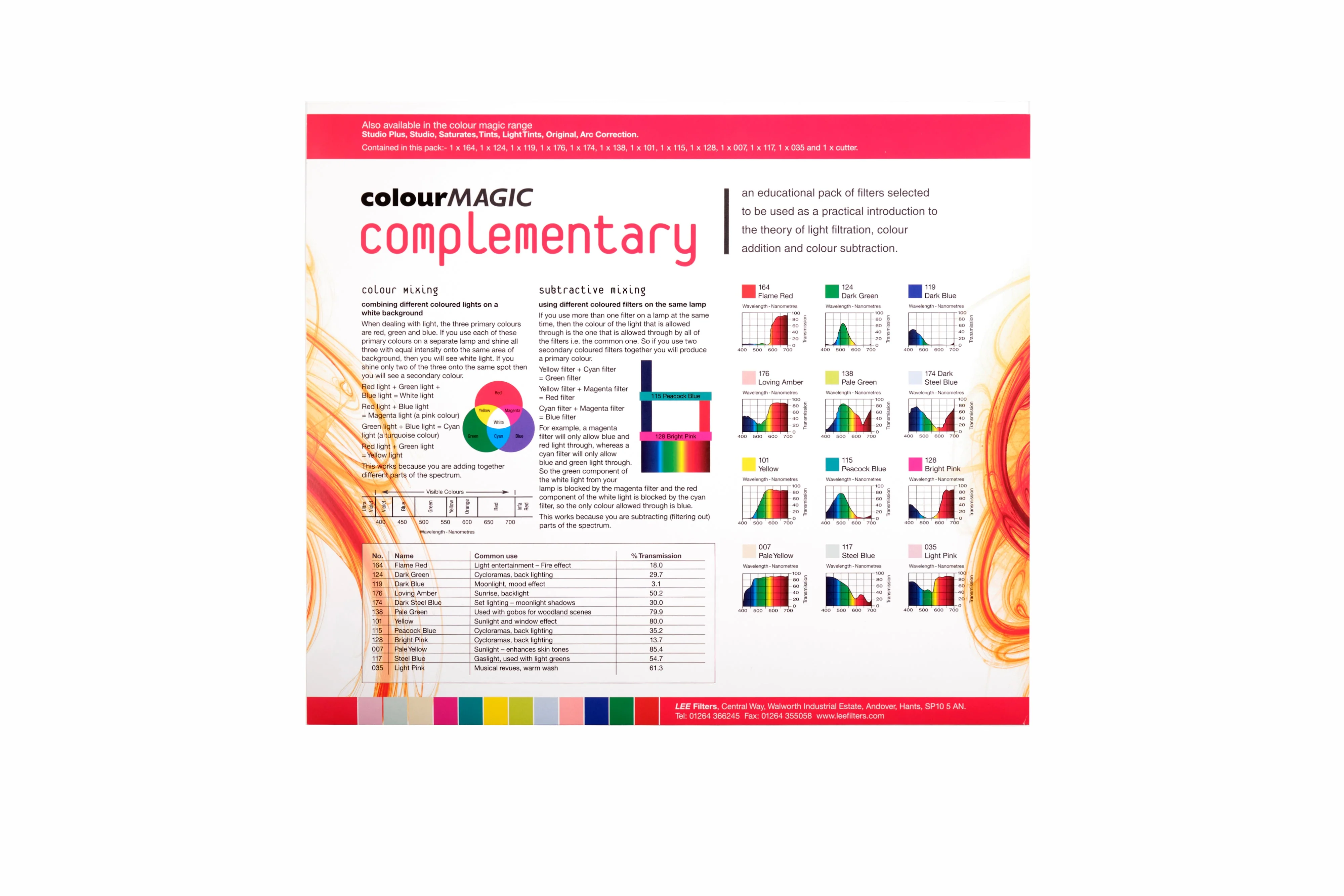 LEE Colour Magic Complementary Lighting Gel Pack. The Colour Magic Complementary Pack is a good starter pack for exploring the basics of colour addition and subtraction.