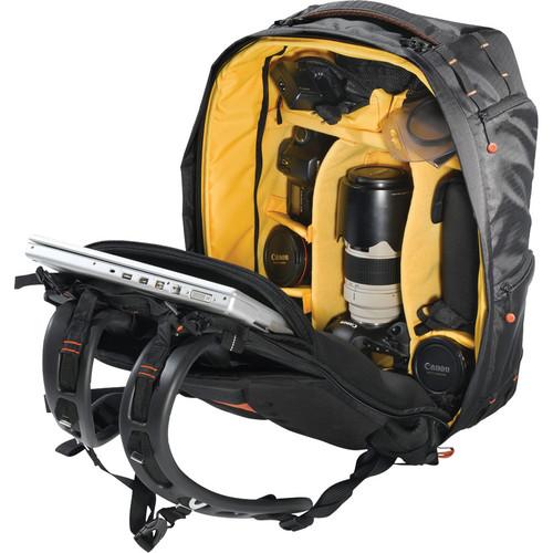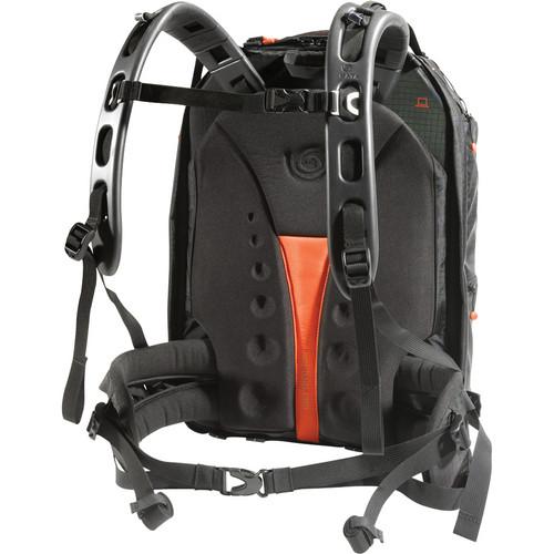 The pack is made from lightweight, durable Ripstop nylon and polyester mesh exterior, with a TST (Thermo Shield Technology) rib structure that provides protective zones for the camera where it will most likely be impacted by shock, vibration and Aeriform foam that is made of perforated super light laminated and reinforced EVA and EPE foams. It is also has additional protection from a specially formed, foam encased, spring steel Spine Guard and Honeycomb rigid panels that are formed and shaped. The Yelloop interior is a bright yellow material for viewing the contents with ease and attaching any optional Modi-Vers dividers. The modular interior allows removal of various components that are not necessary for a specific shoot.