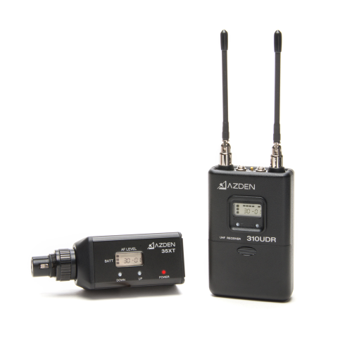 The Azden 310XT is a powerful yet affordable UHF wireless combo-microphone system for camera-mount applications. The system consists of Azden's 35XT plug-in microphone transmitter and 310UDR camera-mount diversity receiver. The inclusion of both the body-pack and plug-in transmitters allows users the flexibility of choosing the right microphone for the right job.