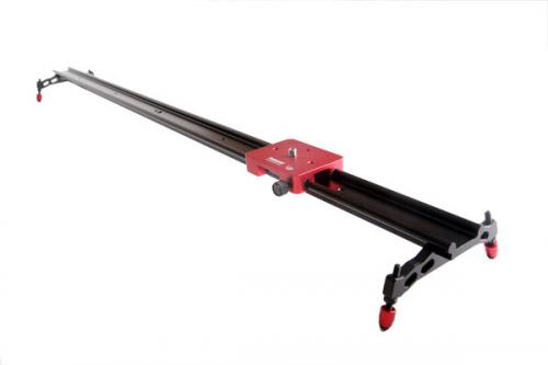 Kamerar's SLD470 Video camera slider offers almost 4 Feet of tracking in a lightweight unit. Custom designed from the ground up, the all metal slider is machined with a black anodized finish to provide lasting durability. The red anodized carrier slides using Kamerar's compound friction bearings for smooth noise-free operation.