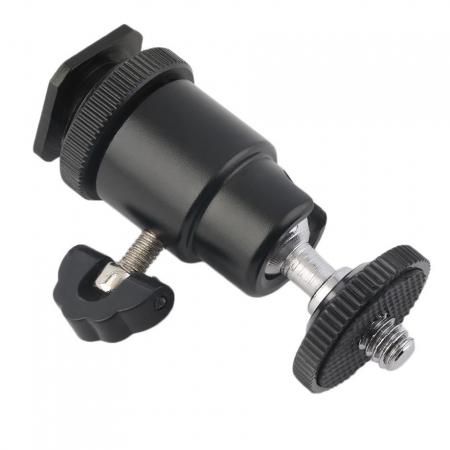 1/4 inch thread With mini ball head design, rotatable in 360 degrees, allows you to change the angle as you want. Easy operations, no installation tools needed, providing much more convenience to the users. Specially designed for connecting camera, camcorder and other devices with 1/4 inch hotshoe to LCD monitior, LED light, Microphone, etc.