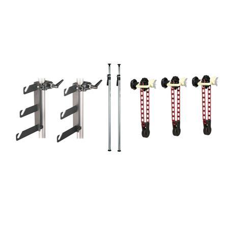 Background system kit for 3 rolls Includes 2 x 032B Autopoles (2.1>3.7mtr) 3 x 046MC expan set 1 x 044 triple hooks and clamps