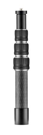 The VR Small Carbon Fibre Extension Boom is made of high quality carbon fibre, guaranteeing both maximum rigidity extreme lightness. Its 4 sections enable it to reach a maximum height of 80 cm, and it is only 33 cm when closed, which makes it easy to carry on 360° shoots. It holds up to 2 kg in its maximum vertical extension. The pole has a double interchangeable attachment on top: by simply screwing the upper disc, users can easily and rapidly move from a ¼” to a 3/8” male attachment, according to the type of 360° device they want to use on top of the boom. Thanks to their rubber grip, its strong and reliable twist-locks are easy to operate and guarantee maximum hold when the pole is extended. With its 3/8” female attachment at the bottom, it is perfect used in combination with the Manfrotto carbon fibre tripod or with the Manfrotto mini aluminium support, for both in indoor and outdoor shooting. It is ideal for tourism, festivals, surveys, construction planning, and many other applications. It provides a new, exciting perspective of landmarks and landscapes at elevated heights.