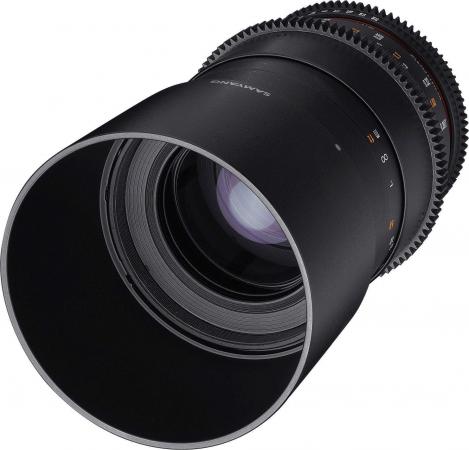 Free Your Action Telephotos and Close-Ups for CinematographyThe Samyang Optics 100mm T3.1 VDSLR ED UMC Macro is a macro telephoto manual focus cine lens designed for full frame sensor sizes. The maximum close-up magnification is 1:1. This macro lens with vivid colour and soft out-focusing is the best lens for close-up images of flower and insects. It also can be used as a 100mm telephoto lens for landscapes and portraits. The lens allows more delicate video work with T number marks. The focus gear ring is installed for follow focus system. You can change the aperture quietly and smoothly with the uncoupled aperture gear rings. Also, distance scale and T numbers are marked on both sides of the lens for convenience. The Samyang 100mm T3.1 has a low T number of T3.1. You can control the lens precisely when shooting under various exposure environment including relatively dark or too bright situations. This lens features 15 lenses in 12 groups including a high refractive lens (HR) and extra low dispersion lens (ED) to minimise colour aberration and unnecessary light dispersion, in order to offer high resolution throughout the image. The Ultra Multi Coating (UMC) is used to optimise light penetration and minimise flare and ghost. With such optical construction, it has 0.307m of minimum focal length to film subjects in a very near distance. There are 9 aperture blades designed to be almost a full circle when the aperture is closed, which expresses starlike ray clearly and beautifully. The frame of the lens is compact and solid since it is made of high-strength aluminium alloy so you can create trustworthy images. Also, detachable petal-shaped hood minimises flare and ghost by sheltering the lens from unnecessary light. The 100mm T3.1 VDSLR ED UMC Macro is one of Samyang Optics VDSLR II Cine Lens line for full frame image sensor sizes. The lenses produce the same image colour and have a united location of aperture and focus gear ring to maximise the convenience when filming. No specifications for this product. No accessories for this product. |
