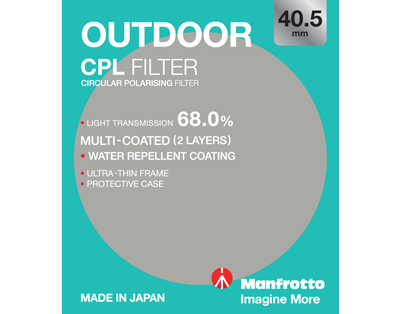 ![]() OutdoorManfrotto’s Outdoor range of super thin multi-coated glass filters are designed to suit every photographer. UV filters with an 8 layer coating help reduce excessive haziness caused by ultraviolet (UV) light and also doubles as a durable lens protector. Circ-Pol filters with 2 layers of coating provide excellent colour and contrast enhancement for sensational captured imagery. All Outdoor filters come with a high quality water repellent coating, a protective case and a 3 year warranty.