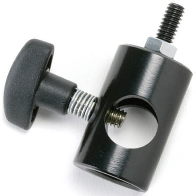 Mounts onto any standard 5/8" post and provides a 1/4-20" threaded stud with backing nut.