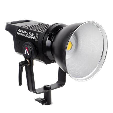 DescriptionBoasting 25% more brightness than its predecessor, DMX control, and a redesigned handbrake-locking yoke, the Light Storm LS C120D II Daylight LED Light from Aputure is a chip-on-board (COB) fixture with a 5500K color temperature. It consumes a negligible 180W of power while outputting 135,000 lux, equivalent to a 1000W hot light at a distance of 0.5m with an optional Fresnel. In addition to power efficiency, the fixture also features a high CRI/TLCI rating of 96/97, an indicator of precise rendering of colour. Ideal for sound-sensitive environments, the LS C120D II is seen but not heard thanks to an intelligent cooling system that employs temperature-sensitive fan to regulate the heat. There is also an Auto/Force button that triggers maximum cooling. In any case, even at maximum power, the fan noise doesn't exceed 18 dB: basically the sound of a person breathing.