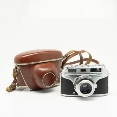 Great design. Definitely needs service. The aperture/speed release is tight. light meter works though doubtful it is accurate. (This is odd for this type of meter). Leather case in good condition for age. The frame numbers have worn off. Does not work properly so selling as part/decorative without warranty.