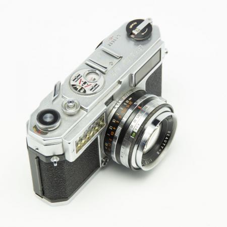 This is a very good looking camera from 1959. The light meter no longer works, but the shutter speeds sound close. Comes with leather case marked ‘Beauty’ and the lens cap. Due to its age we do not provide a warranty and sell as parts.