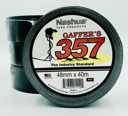 Nashua 357 Black Gaffer Tape 48mm X 40m is a cloth tape preferred by the military, waste disposal, construction, racing, entertainment, band, film and location professionals.