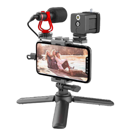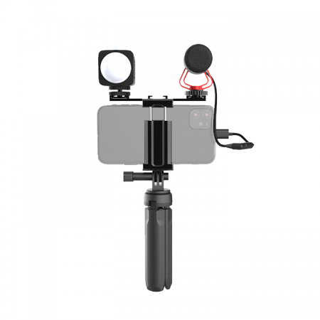 Vlog Kit includes extension pole, LED fill light, microphone and tripod. With a compact and lightweight design, the video kit is perfect for creators without limitations of scene, environment and light. It comes with everything you need to vlog; the kit is perfect for live stream, travel selfies, home videos and outdoor sports etc.
