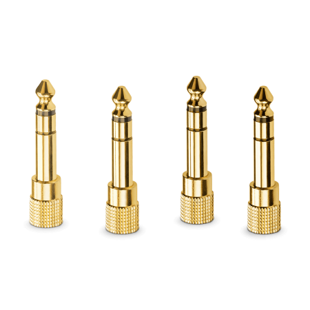 The HJA-4 is a pack of four high-quality adaptors for converting headphones with 3.5mm plugs (as used on most consumer devices) for use with equipment that has the larger ¼-inch headphone sockets. They are particularly suitable for connecting headphones to the RØDECaster Pro and the AI-1.