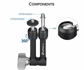 Leofoto magic arm with iPad clamp adapter. The kit comes with an iPad clamp adapter which allows the arm to hold an iPad. The magic arm is capable of holding other accessories that the smaller AM-2L is not suited for. Specifications