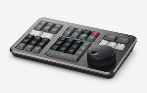 The DaVinci Resolve Editor Keyboard is a full sized traditional QWERTY edit keyboard in a premium, all metal design. Featuring a machined metal search dial with clutch, it also includes extra edit, trim and timecode entry keys. It's even designed to install via a desk cut-out for flush mounting!