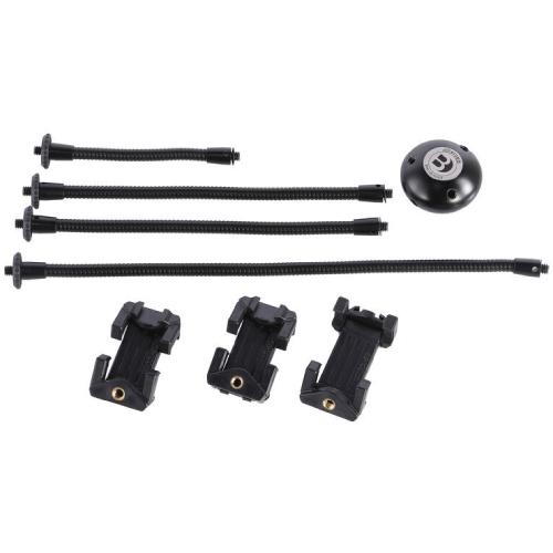 Benro MeVideo Livestream Accessory Expansion KitThe MeVIDEO Livestream Accessory Kit from Benro allows you to mount multiple devices or accessories at a central point, creating custom lighting and camera setups. Perfect for livestreaming, you can attach mobile phones, LED lights, audio gear, and more to stream across multiple platforms simultaneously. The kit includes four flexible arms in various lengths-one at 4", two at 8", and one at 12"-each with 1/4"-20 male threads on both ends. Easily adjust the flex arms to mount phones and accessories horisontally or vertically, enabling shooting in any orientation.