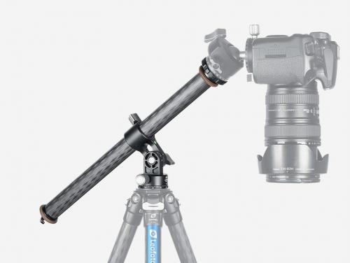 The Leofoto HC Series Horizontal Panoramic Carbon Fiber Center Column System is a carbon fiber extension set that allows an adjustable center column to be added to a tripod without a center column. The rugged but lightweight carbon-fiber column can be rotated a full 360° and tilted 180° from horizontal to fully vertical in either a standard or inverted orientation. One end of the column features a mounting platform with a reversible 1/4"-20 to 3/8"-16 mounting stud and three set screws to securely mount virtually any tripod head and prevent it from rotating. The other end of the column is a weight hook that can be fully rotated so that it can always be facing up to receive a sandbag, equipment bag strap, or other type of ballast. It comes in two sizes, the HC-28 and the HC-32 with the latter having a kit option.