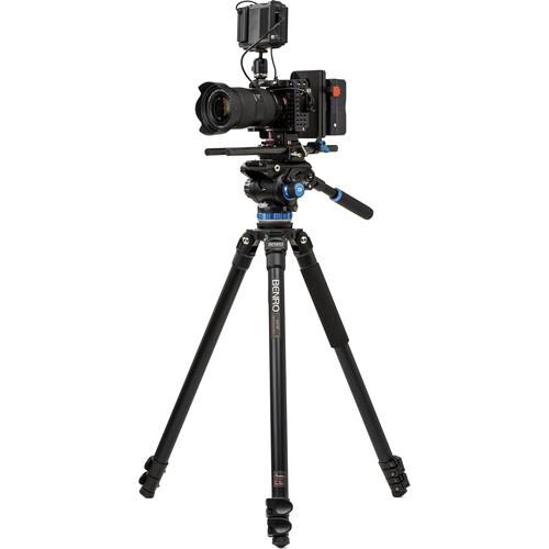 Benro A373FB (S6PRO Head) Aluminium Video Tripod KitThe Benro A373FBS6PRO is a 75mm bowl single tube style video tripod with the S6PRO video head. The tripod also features flip locks and 3 independent leg position angles. Rubber and spiked feet are both included. Built for a range of video cameras and accessories, the S6PRO video head supports up to 6kg. Equipped with a 75mm flat base with a 3/8"-16 thread, the S6PRO is a versatile creative tool allowing you to mount the head separately on sliders, jibs, or monopods. Other features include: pan & tilt lock, continuous pan & tilt drag, 6-step counterbalance (0-5), illuminated bubble level and two 1/4"-20 accessory mounts for attaching monitor arms or audio recorders directly to the head. This allows you to attach accessories without needing a cage or rig to do so. Tilt range for the S6PRO is +90°/-75°. The forward 90° tilt helps with table top setups. The S6PRO also features metal ratchet style knobs and an improved CNC machined aluminium sliding camera plate.