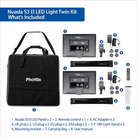 ake your photo or video project to the next level with the Phottix Nuada S3 II LED Light. Super easy-to-use, the Nuada S3 II makes lighting effortless. Soft, beautiful light – for photographers new to lighting as well as professionals needing a powerful and portable light source.