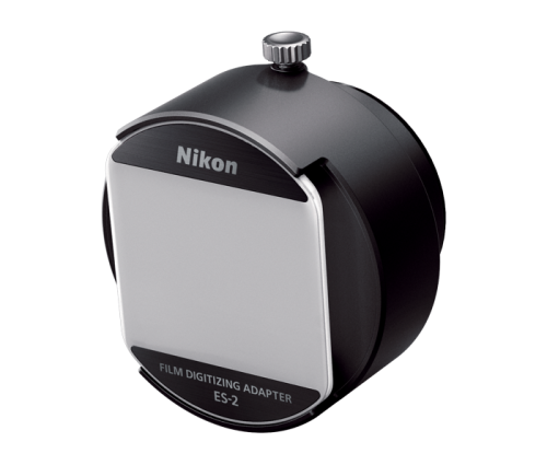 The ES-2 is a film Digitizing Adapter that lets youeasliy convert your film images to digital Easing the process for making digital files from your film originals, the ES-2 Film Digitizing Adapter Setfrom Nikon is a clever accessory for re-photographing 35mm negatives and slides. Designed to be paired with a macro lens, such as the AF-S Micro NIKKOR 60mm f/2.8G ED, this adapter is fitted to the front of the lens and holds the film at the minimum focusing distance of the lens to ensure critical sharpness. Dedicated film holders for both film strips and mounted slides are included, as well, to help hold the film taut and to benefit handling. While suitable for use with any camera, this adapter is particularly well-suited for the D850 due to its dedicated Negative Digitizer mode and ability to automatically reverse colors in-camera to expedite the digitizing process. In the Box