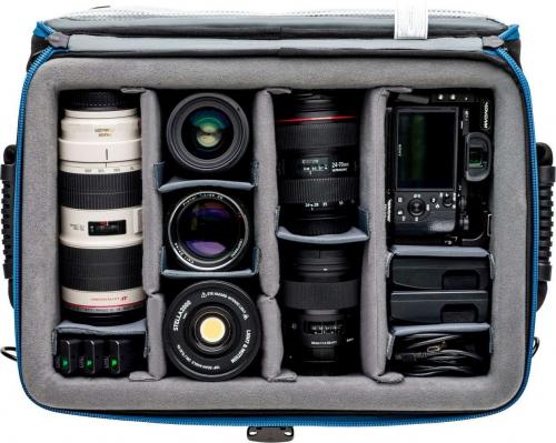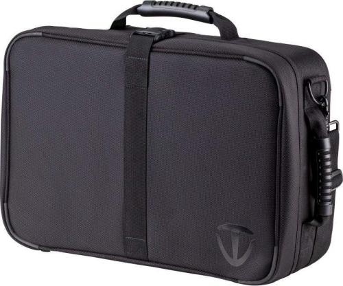 Tenba Transport Air Case Attaché 1914Tenba Air Case Attaché cases are the ultimate lightweight multipurpose transportation solution for every style and size of photographic and filmmaking gear. They provide the strength and rigidity of a hard case at a fraction of the weight. Air Cases are strong enough to withstand more than 400 pounds stacked on top, yet they weigh up to 35% less than the average plastic hard case. This allows more gear - and heavier gear - to be stored in the case and still be within airline weight limits. These cases also solve many of the common issues with plastic hard cases by having stronger, smoother rolling wheels; softer, more customizable interior layouts; better performing rolling luggage handles; zippered interior pockets and much more. Hard Case Safety - Air Cases provide the strength and rigidity of a hard case at a fraction of the weight. They are strong enough to withstand more than 400 pounds stacked on top, yet they weigh up to 35% less than the average plastic hard case. Impact Protection - Patented layered construction absorbs and disperses impact better than the single-layer wall of an injection molded hard case. Durability and Weather Resistance - Built with the finest materials and hardware, including water-repellent 1680D ballistic nylon (exterior), soft brushed tricot (interior), hypalon-reinforced corners, YKK® zippers and heavily-reinforced stitching. Trolley Strap - Rear strap slides over the extending handle of a rolling case for quick and secure piggyback travel Tethered Case Lid - Keeps lid upright when opened so it works as a mobile workstation. Helps the Air Case maintain a small footprint in tight environments. Soft Rubber Hand Grips - Comfortable to carry even when the case is fully loaded. Three handles per case ensure that heavy loads can be shared with a second person when needed. Zippered Interior Pocket - Keeps cables and other small items organized. Versatile Divider System - Reinforced, adjustable dividers to customize layout. Gray dividers are flexible and blue dividers are rigid for additional support. Other great features include: I.D. Window - Molded I.D. window fits a business card to easily personalize case. Carry-On Compatible - Complies with most carry-on regulations. Padded Shoulder Strap - Allows case to be carried comfortably. Materials - 1680D ballistic nylon (exterior), soft brushed tricot (interior), hypalon-reinforced corners, YKK® zippers, Welded Steel D-rings, ABS molded rim, air-channeled polypropylene walls, High-Density EVA foam.