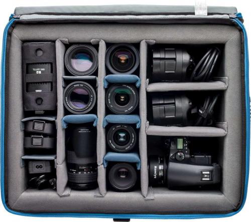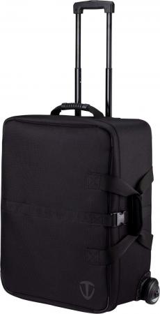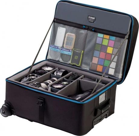 Tenba Transport Air Case Attaché 2520w with WheelsTenba Air Case Attaché cases are the ultimate lightweight multipurpose transportation solution for every style and size of photographic and filmmaking gear. They provide the strength and rigidity of a hard case at a fraction of the weight. Air Cases are strong enough to withstand more than 400 pounds stacked on top, yet they weigh up to 35% less than the average plastic hard case. This allows more gear — and heavier gear — to be stored in the case and still be within airline weight limits. These cases also solve many of the common issues with plastic hard cases by having stronger, smoother rolling wheels; softer, more customizable interior layouts; better performing rolling luggage handles; zippered interior pockets and much more. Hard Case Safety - Air Cases provide the strength and rigidity of a hard case at a fraction of the weight. They are strong enough to withstand more than 400 pounds stacked on top, yet they weigh up to 35% less than the average plastic hard case. Impact Protection - Patented layered construction absorbs and disperses impact better than the single-layer wall of an injection molded hard case. Durability and Weather Resistance - Built with the finest materials and hardware, including water-repellent 1680D ballistic nylon (exterior), soft brushed tricot (interior), hypalon-reinforced corners, YKK® zippers and heavily-reinforced stitching. Trolley Strap - Rear strap slides over the extending handle of a rolling case for quick and secure piggyback travel Tethered Case Lid - Keeps lid upright when opened so it works as a mobile workstation. Helps the Air Case maintain a small footprint in tight environments. Soft Rubber Hand Grips - Comfortable to carry even when the case is fully loaded. Three handles per case ensure that heavy loads can be shared with a second person when needed. Zippered Interior Pocket - Keeps cables and other small items organized. Versatile Divider System - Reinforced, adjustable dividers to customize layout. Gray dividers are flexible and blue dividers are rigid for additional support. I.D. Window - Molded I.D. window fits a business card to easily personalize case. Padded Shoulder Strap - Allows case to be carried comfortably. Materials - 1680D ballistic nylon (exterior), soft brushed tricot (interior), hypalon-reinforced corners, YKK® zippers, Welded Steel D-rings, ABS molded rim, air-channeled polypropylene walls, High-Density EVA foam.