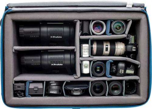 Tenba Transport Air Case Attaché 3220w with WheelsTenba Air Case Attaché cases are the ultimate lightweight multipurpose transportation solution for every style and size of photographic and filmmaking gear. They provide the strength and rigidity of a hard case at a fraction of the weight. Air Cases are strong enough to withstand more than 400 pounds stacked on top, yet they weigh up to 35% less than the average plastic hard case. This allows more gear - and heavier gear - to be stored in the case and still be within airline weight limits. These cases also solve many of the common issues with plastic hard cases by having stronger, smoother rolling wheels; softer, more customizable interior layouts; better performing rolling luggage handles; zippered interior pockets and much more. Hard Case Safety - Air Cases provide the strength and rigidity of a hard case at a fraction of the weight. They are strong enough to withstand more than 400 pounds stacked on top, yet they weigh up to 35% less than the average plastic hard case. Impact Protection - Patented layered construction absorbs and disperses impact better than the single-layer wall of an injection molded hard case. Durability and Weather Resistance - Built with the finest materials and hardware, including water-repellent 1680D ballistic nylon (exterior), soft brushed tricot (interior), hypalon-reinforced corners, YKK® zippers and heavily-reinforced stitching. Heavy-duty Wheels and Extending Handle - Corner mounted wheels give the case a wide wheelbase and ensure excellent stability when rolling. Aircraft-grade aluminum handle extends to comfortable walking height, easing the strain on the back and shoulders when wheeling through long airport stretches. Ergonomic handle has soft coating for a comfortable grip. Tethered Case Lid - Keeps lid upright when opened so it works as a mobile workstation. Helps the Air Case maintain a small footprint in tight environments. Soft Rubber Hand Grips - Comfortable to carry even when the case is fully loaded. Three handles per case ensure that heavy loads can be shared with a second person when needed. Zippered Interior Pocket - Keeps cables and other small items organized. Versatile Divider System - Reinforced, adjustable dividers to customize layout. Gray dividers are flexible and blue dividers are rigid for additional support. I.D. Window - Molded I.D. window fits a business card to easily personalize case. Materials - 1680D ballistic nylon (exterior), soft brushed tricot (interior), hypalon-reinforced corners, YKK® zippers, Welded Steel D-rings, ABS molded rim, air-channeled polypropylene walls, High-Density EVA foam.
