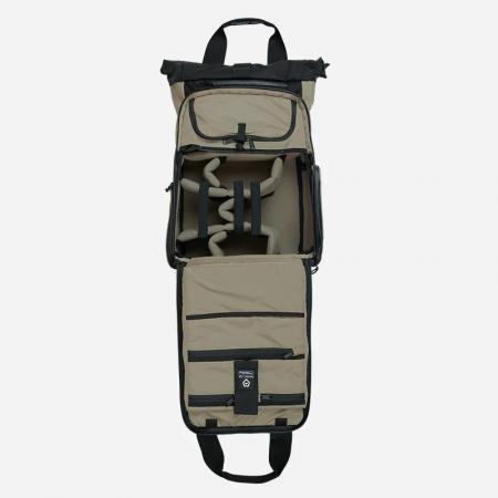 Camera Compartment: Insert with Adjustable Dividers (Hook & Loop) Laptop Compartment: Tech Panels |
