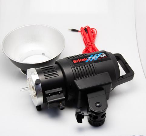 All in one flash rated to 500. Comes with cords, reflector and case.