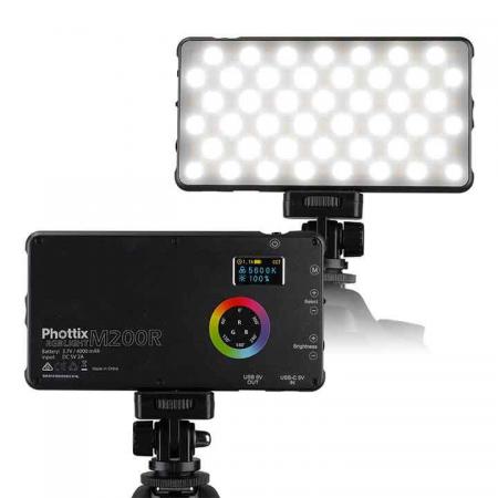 The Phottix M200R RGB Light is a compact and powerful light source for still and video photography. It uses the latest in flicker-free LED technology, making it more efficient and durable. The Phottix M200R RGB Light features: