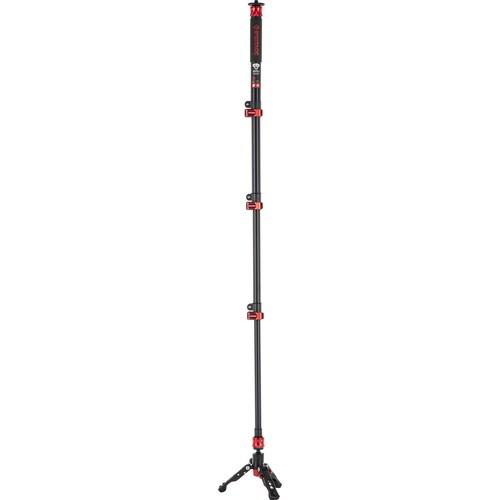 Monopod with four parts, configurable in three different positions: column and pod for hands-free support, column only for handheld use, and pod only for low-angle shooting Compatible with equipment weighing up to 17.6 lb and that uses a 1/4"-20 or 3/8"-16 threaded mount Main column made of aluminum alloy for durability and temperature resistance, uses three sections operated via a twist lock to extend to up to 59.1" in height Complete system with all its parts can be tilted up to 90°, and features a collapsed height of 31.9" and weight of 3 lb Low-angle pod has three feet that can be set at 20, 50, and 78° angles Removable rubber foot goes below the pod and helps prevent slipping in smooth surfaces Sliding lock used for quick release mount, can be pushed up to fasten the head or pushed down to release it from the column