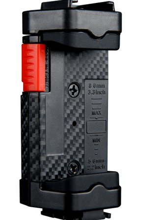 The FPH-H2 phone holder is designed for phone sizes ranging from 56mm up to 86mm, which is big enough to hold an iPhone 15 Pro Max. Equiped with a quick release button, it allows the phone holder to quickly expand without the need to pull making it easier to insert the phone. Additional accessory attachments include a cold shoe and a 1/4” thread. Plus the FPH-H2 can be joined together via the cold shoe in a head-toe configuration allowing it to become a modular unit holing multiple devices.