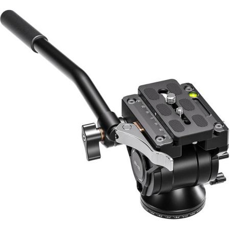 Leofoto BV-10L Fluid Video Head with Lever Release ClampLightweight and compact, this Leofoto BV-10L (Lever-Release Clamp) Fluid Video Head is suitable for DSLRs, mirrorless cameras, and compact camcorders weighing up to 11 lb. Featuring both a 1/4"-20 and 38"-16 mounting screw, the head accepts a wide variety of cameras. The head features a 60mm flat base that can mount on compatible tripod legs, a slider carriage, or other platforms with a 3/8"-16 mounting screw. While the BV-10 employs a traditional screw knob clamp, the BV-10L, released in 2024, introduces a lever release clamp, facilitating faster attachment of the Arca plate.