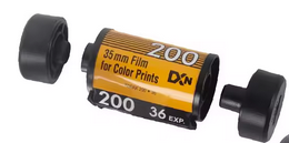 This adapter has top and bottom parts which exactly centers the 35mm film canister. Combined, the dimensions are the same as a 120 spool, and the film is fully exposed, sprocket holes and all, leading to interesting effects