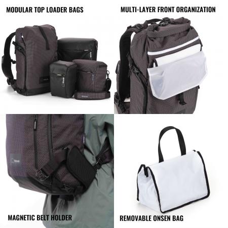 Modular Top Loader Camera Inserts (STARTER KIT INCLUDES MEDIUM TOP LOADER): All Side Series backpacks use our Shimoda Top Loader camera insert system. Top Loaders come in 3 sizes (S, M, L) and can be used inside a backpack as the camera insert or on their own as a Sling/Shoulder Bag, and can also be used with the backpack’s waist belt as a Hip Pack. Side Series packs can be easily adapted to different shooting scenarios with one modular system.