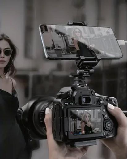 The FPH-H3 phone holder can be used as a free-standing tabletop stand or attach to the hot shoe of your camera with the included hot shoe mount. The phone holder can be rotated to be both portrait and landscape orientation.