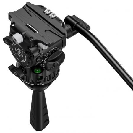 - Professional fluid video head with 15-step counterbalance system (2–15kg load range)