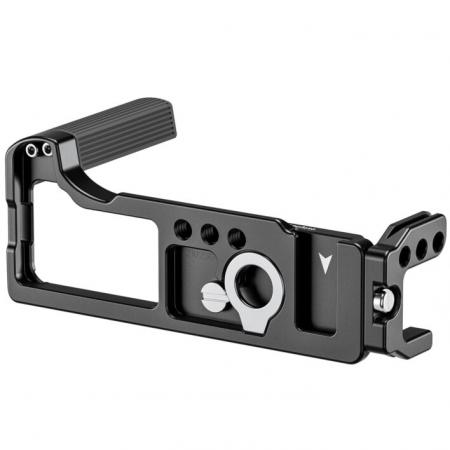 Custom-fit L-bracket for Canon R50V with precision-machined contours
