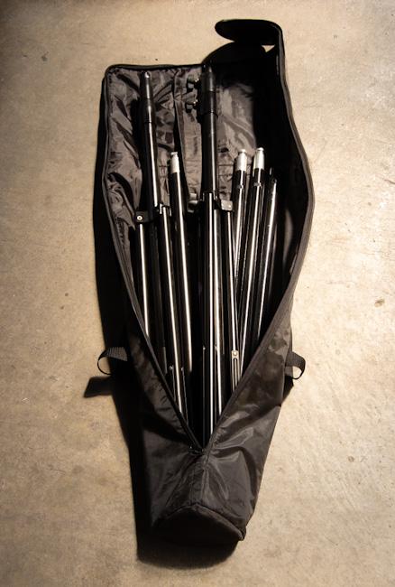 Where the stands and cross bar meet is broken, but if you are a handy person and love the cheap option with a little diy this is for you. Comes with a nice case to hide it all in.