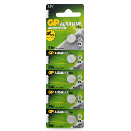 GP LR43 186 V12GA 5pck zinc battery (B-10-43x5-GP)