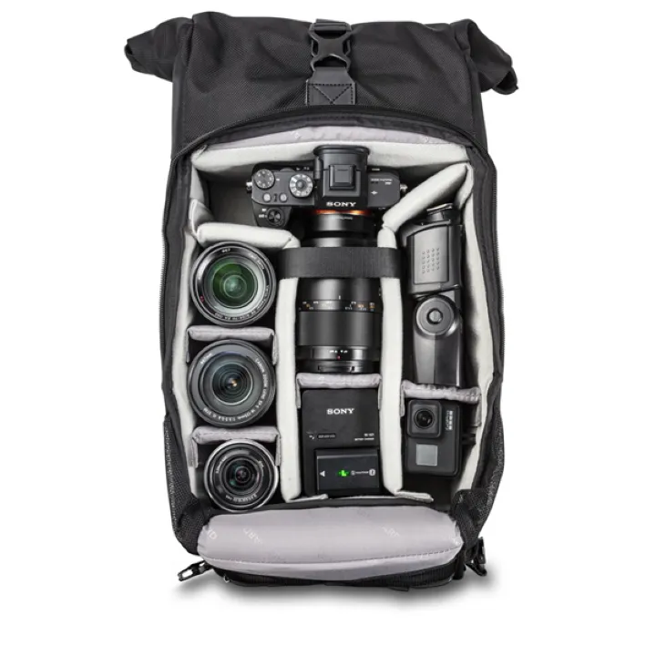 The VEO SELECT 43RB is a stylish roll-top backpack with a full front opening to its gear compartment, and a flexible, wide-opening top section for other items and accessories. This bag is ideal for enthusiastic photographers who want to carry as much as possible while sporting a compact yet stylish fashion accessory that does not shout, “I am a camera bag!”