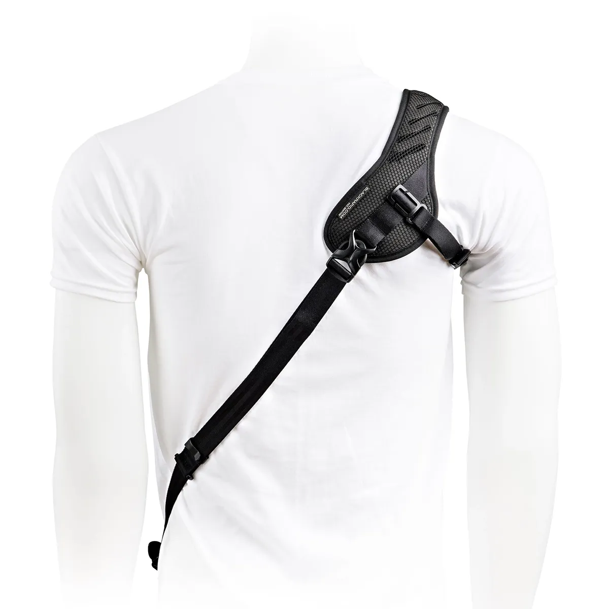 #1 single camera strap style since 2009, with extreme breathability! Blackline I Left, for Left-handed users!BLACKRAPID, the most trusted camera strap company, now features high-tech lightweight materials for ultra breathability to our patented shoulder pad shape for ergonomic comfort. The BLACKRAPID Blackline I Left strap/sling is perfect for DSLR, SLR and Mirrorless Cameras. Join The Revolution! The Perfect Camera Strap for Canon, Nikon, Sony, Olympus, Fuji DSLR and MirrorlessBLACKRAPID Blackline camera straps are the perfect choice for photographers demanding comfort, security, style and speed-of-use. Manufactured of high-quality materials, and utilizing BLACKRAPID’s world renowned, highly-trusted, patented hardware, Blackline camera straps are durable, sleek, lightweight, low-profile, and the most breathable camera straps BLACKRAPID has produced to date! In keeping with the “blacked-out” theme, the BLACKRAPID logo and Lockstar II are all black. Blackline camera straps are ideal for photographers desiring to remain discreet at events, street, studio, press, journalism, wildlife and sports shoots.