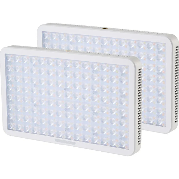 2-Light Kit with Accessories Output of 6290 Lux at 1m Colour Range from 2300 to 10000K CRI 96 and TLCI 97 15.5 x 25.4cm Panel Size Battery and AC Power Options Onboard, App, and Bluetooth Control Dimming Range from 0 to 100% Charging via USB-C Cable