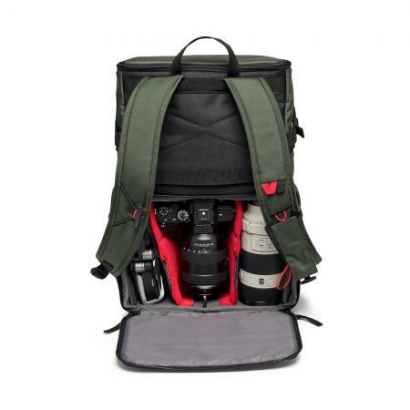 The padded removable camera compartment features the brand-new Manfrotto M-Guard™ Protection System. Made of special high-density EVA foam, it provides exceptional shock absorbing response with a super slim profile. The customizable folding patterns allow maximum versatility to fully protect camera gear while maximizing the use of space. There’s a dedicated removable padded laptop sleeve that can fit up to a 14 inch laptop, which can be accessed through the top and used separately too. The access to the camera compartment is interchangeable from front to backside thanks to the unique design that allows you to choose the access that fits you better: easily remove the camera compartment and the laptop sleeve and shift from back to front opening in instant while also repositioning the laptop sleeve.