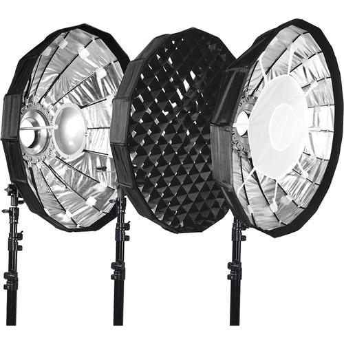The included fabric grid offers another lighting option by containing spill light and narrowing the beam spread to selectively light areas of your subject and keep stray light from your background. The Modmaster has a Bowens adapter for flash heads with this popular front accessory mount. Adapters for other types of heads are available separately. A carrying bag is included for storage and transport.