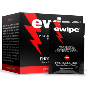 Safe for use on monochrome CCD's, scanners, optical mirrors and other sensitive electronic and photographic image-forming surfaces when used as directed. e-wipe combines an ultra pure lint-free wipe and a precise pre-measured amount of an ultra-pure, highly refined alcohol mixture. This convenient packaging prevents over useage and contamination which can destroy an expensive component. As originally sealed, this packet contains not more than 5 parts per million of contaminants and when used, will dry instantly leaving absolutely no residue! To use, tear open a packet at notch and remove wipe. With a gentle flick of the wrist, the pad will unfold. This should be done with one hand to minimize handling. Lightly wipe across the surface to be cleaned in a single direction only. Do not go over a previously cleaned area with the same wipe, or re-use a wipe at any time, as the dirt collected can cause severe damage. Recommended by manufacturers of digital cameras, scanners and other devices with critical cleaning requirements. This product meets or exceeds SEMI standards. Not for use with Dye-On CCD chip.