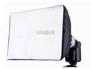 Flex Mount Softbox Mounting holes. On each edge of the Flex mount you will see 4 holes for mounting a Strobies softbox,(as shown with the rods inserted). It is best to erect the softbox without the flex mount being on the flashgun to prevent any damage to the Flash gun or the material of the softbox. The softbox will give a soft uniform light source and is ideal when combined with a reflector or other Strobies products to add a fill light. Using the softbox in iTTL or eTTL flash mode requires no adjustment to your exposure systems. The softbox is easy to put together by following the simple instructions below.