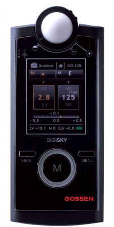| DIGISKY is the new handy and lightweight exposure meter in the GOSSEN range of products for flash light and ambient light. It is the big, well-arranged graphic display which permits a comfortable reading of the measured values. Designed for one-hand operating, the DIGISKY is equipped with a ring controller through which all functions may be selected very easily. |